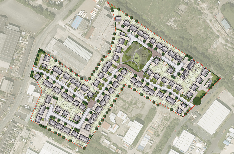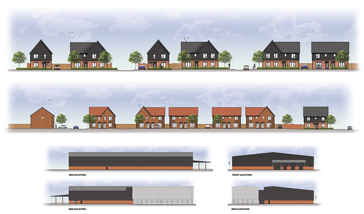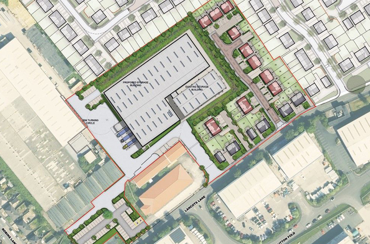 This 5.80 acre site would be home to 32no. new affordable dwellings as well as  an extension to an existing warehouse storage building.